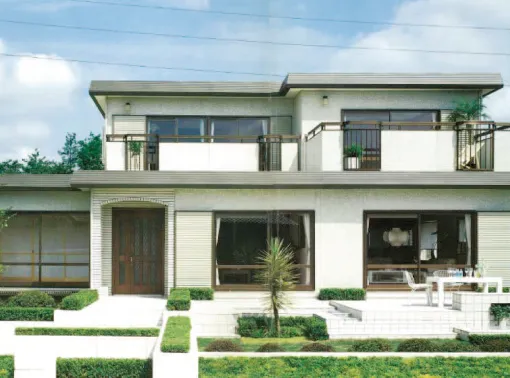 防水の役割とバルコニーの機能が独立しているので、既存のバルコニーを交換することも可能です。さらに、下屋の上に新たにバルコニーを設けることもできます。手すり部分のデザインはパネルと格子の組み合わせから選べます。