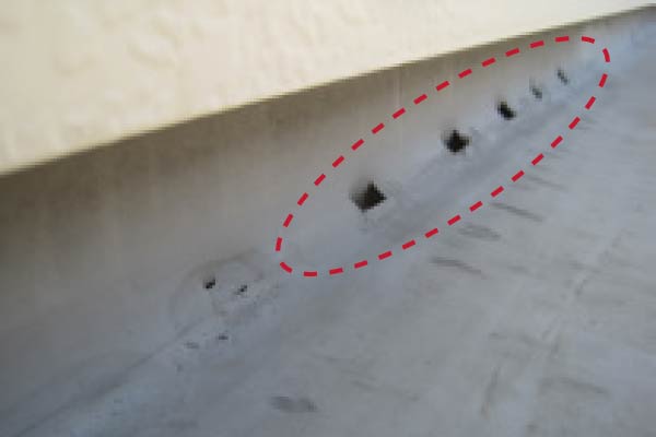 専用の嵌合金物ではなく、折版に穴をあけて新しいバルコニーを固定し漏水に繋がってしまうケースや、固定が甘く風荷重に対する強度が確保出来ず、破損等に繋がる可能性もあるので注意が必要です。