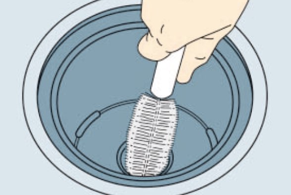 パイプ掃除用ブラシを回転させながら挿入して通りをよくします。