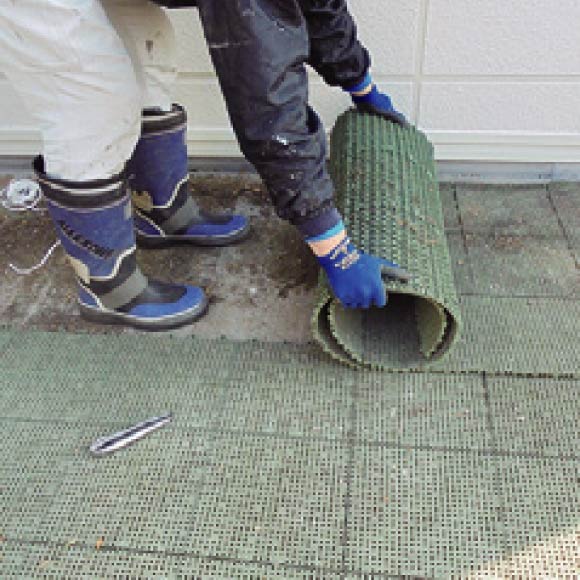 枯葉等の侵入を抑制するため仕上げに化粧ネットを敷設