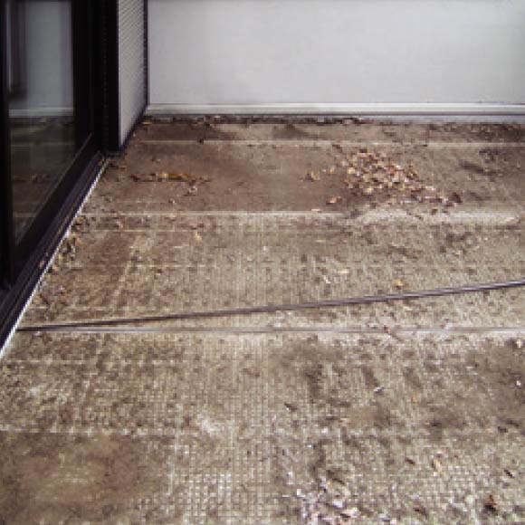 バルコニーはハイム専用設計のため、他社では防水の重要箇所や収まりを誤る可能性があります。下地不良による不陸や床鳴りが発生するケースもあるため、注意が必要です。