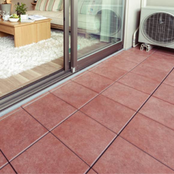 このタイプはバルコニーの下部が屋根と同じ構造になっているため、バルコニーそのものに防水機能はありません。フレームはペンタイトやアルミ※、床材はPVCの素材を使用しています。
